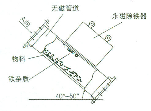 RCYAR1、RCYA2系(xi)列管道(dao)式永(yong)磁(ci)(ci)除(chu)鐵(tie)器(qi)包括無磁(ci)(ci)管道(dao)和永(yong)磁(ci)(ci)鐵(tie)兩部(bu)分,專用(yong)于對(dui)封閉(bi)管道(dao)內非磁(ci)(ci)性(xing)物料除(chu)鐵(tie),永(yong)磁(ci)(ci)除(chu)鐵(tie)器(qi)內部(bu)采(cai)用(yong)高性(xing)能稀(xi)土(tu)強磁(ci)(ci)材(cai)料組(zu)成復合磁(ci)(ci)系(xi)。具有體積小、磁(ci)(ci)力大、重量(liang)輕、除(chu)鐵(tie)干凈(jing)、方便(bian)、無能耗、使(shi)用(yong)壽命長等特點(dian)。適合于無輸送皮帶,只能提供下料溜槽(cao)的場(chang)合。當散狀物料經過管道(dao)式永(yong)磁(ci)(ci)除(chu)鐵(tie)器(qi)時(shi),鐵(tie)雜物被高場(chang)強的永(yong)磁(ci)(ci)鐵(tie)所吸附,清除(chu)鐵(tie)雜質(zhi)時(shi),打(da)開管道(dao)專用(yong)門將雜質(zhi)取出。該設(she)備(bei)適用(yong)于含鐵(tie)量(liang)較少的場(chang)合,含鐵(tie)較多的場(chang)合應(ying)選(xuan)用(yong)自卸式除(chu)鐵(tie)器(qi)或RCYG系(xi)列精細除(chu)鐵(tie)器(qi)。主(zhu)要應(ying)用(yong)于水泥、化(hua)工(gong)、煤炭(tan)、塑料、耐(nai)火材(cai)料、建材(cai)等行業的下料管道(dao)中(zhong)清除(chu)雜質(zhi)。